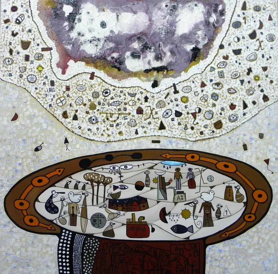 -No lo veo de esa forma, aunque me sentiría orgulloso si fuera así. Creo que mi trabajo actual es una idea espacial que surge del trabajo con los objetos. Esos círculos que se fueron formando en los objetos dieron lugar a la interpretación de células y esas células se volcaron a la tela. Dentro de esas células surgieron elementos de vida… como espermatozoides. Hace justo un año, junto con esas células, espermatozoides y relatos místicos, ha empezado a surgir la creación con la simbología africana. Es la historia de una búsqueda eterna.